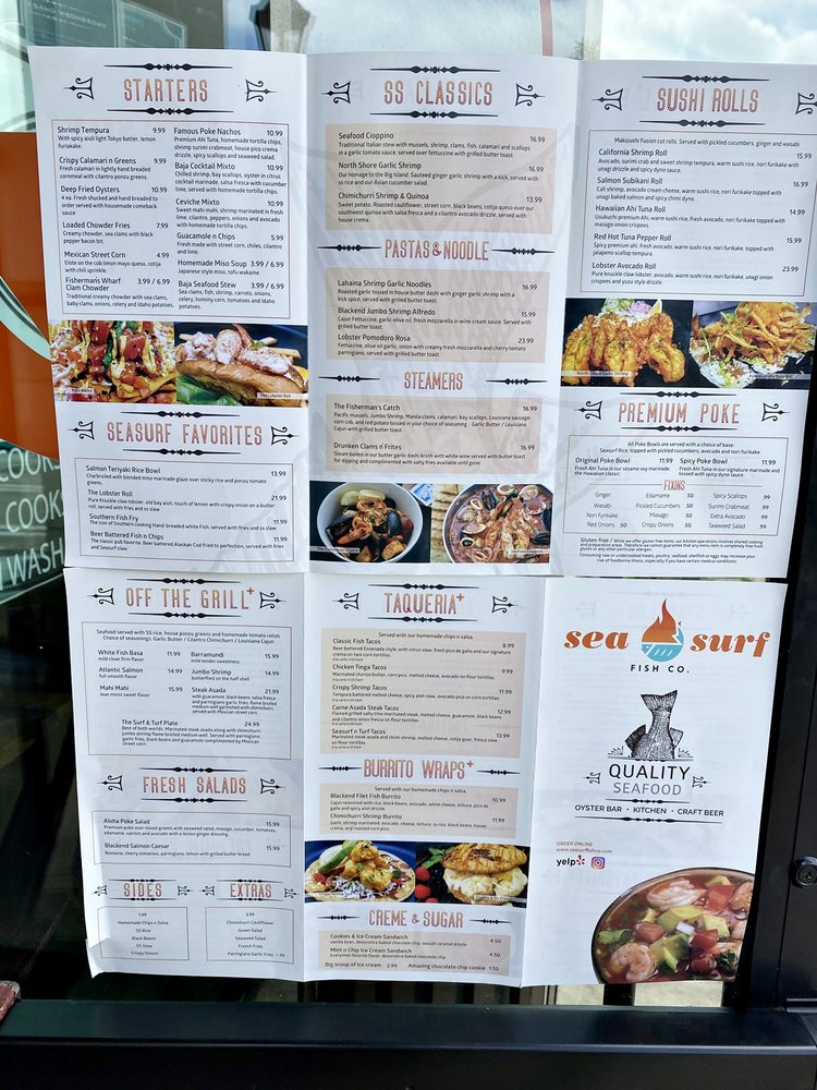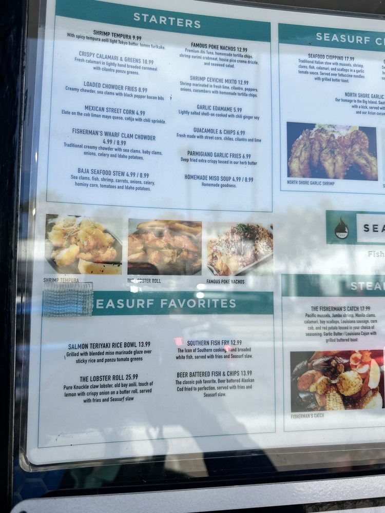 Seasurf Fish Co in Yorba Linda offers a diverse menu with seafood specialties like the Lobster Roll, Salmon Teriyaki Rice Bowl, and Beer Battered Fish N Chips. The restaurant is known for its relaxed and trendy atmosphere, accommodating features like outdoor seating, gender-neutral restrooms, and happy hour specials. Customers rave about the $1.50 oysters during happy hour and dishes like the Poke Nachos and North Shore Garlic Shrimp. The service is efficient, with a mix of self-service and table service, contributing to a fast and enjoyable dining experience. Overall, Seasurf Fish Co is a great spot for seafood lovers looking for delicious dishes in a casual setting.